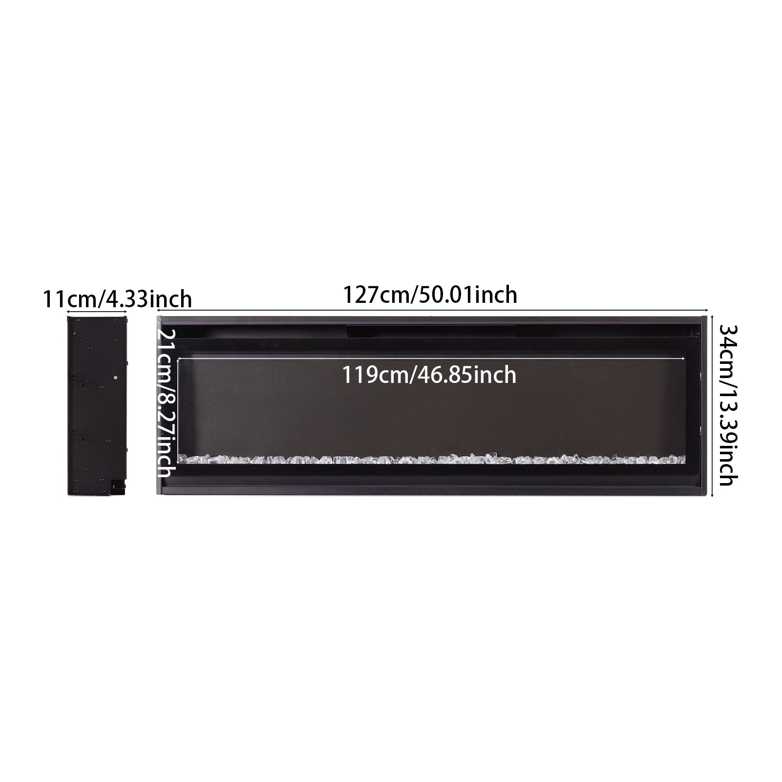 Upgrade your home with this sleek electric fireplace in sizes 40/50/60 inches. Designed for both wall-mounted and recessed installations, this fireplace offers customizable flame color options, brightness settings, and temperature control to create the perfect ambiance. With dual heat settings (750W and 1500W), it ensures efficient warmth for your living room, bedroom, or office. Its crystal ember bed provides a cozy and realistic flame effect, enhancing your interior with a touch of modern luxury. Safety is a top priority with the built-in overheat protection feature.