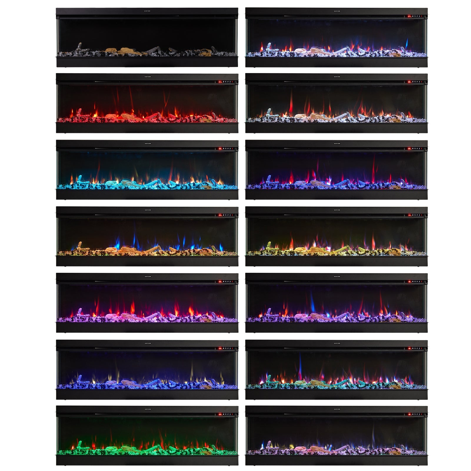 Upgrade your living space with this 3-sided panoramic electric fireplace, designed to deliver both warmth and modern elegance. With an open flame view and removable side panels, it offers versatile installation options to suit your home décor. Featuring independently controlled lighting effects—including top, bottom, and backlight colors—plus realistic flame brightness, adjustable heating, and smart APP control, this fireplace creates a cozy and customizable atmosphere. Perfect for living rooms, bedrooms, and offices.