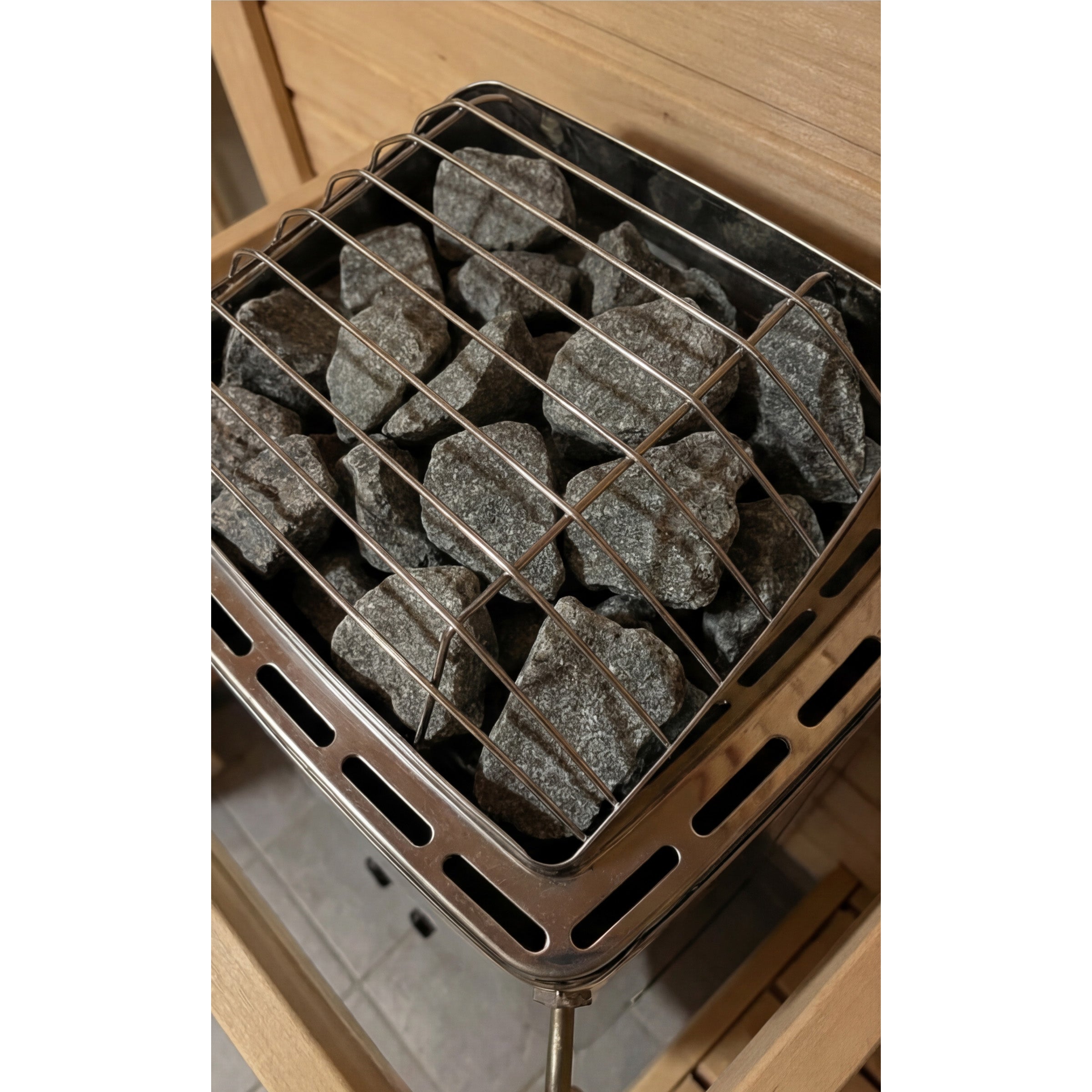 - Special stones, that radiate heat effectively, produce even steam, and can handle the sauna environment.