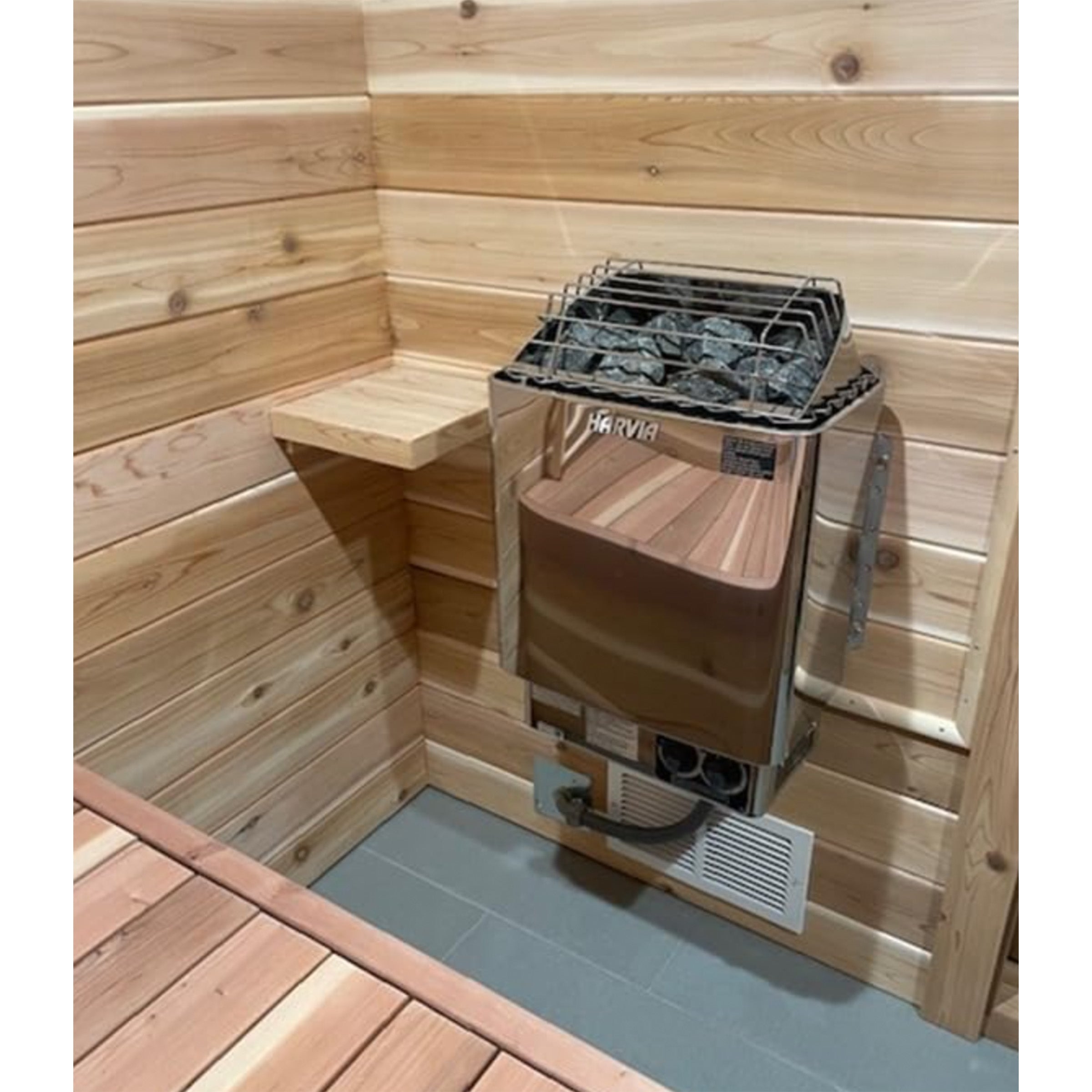 The heater also features designated areas for fragrance liquids and bags. This all-in-one package has everything you need for a complete sauna experience.
