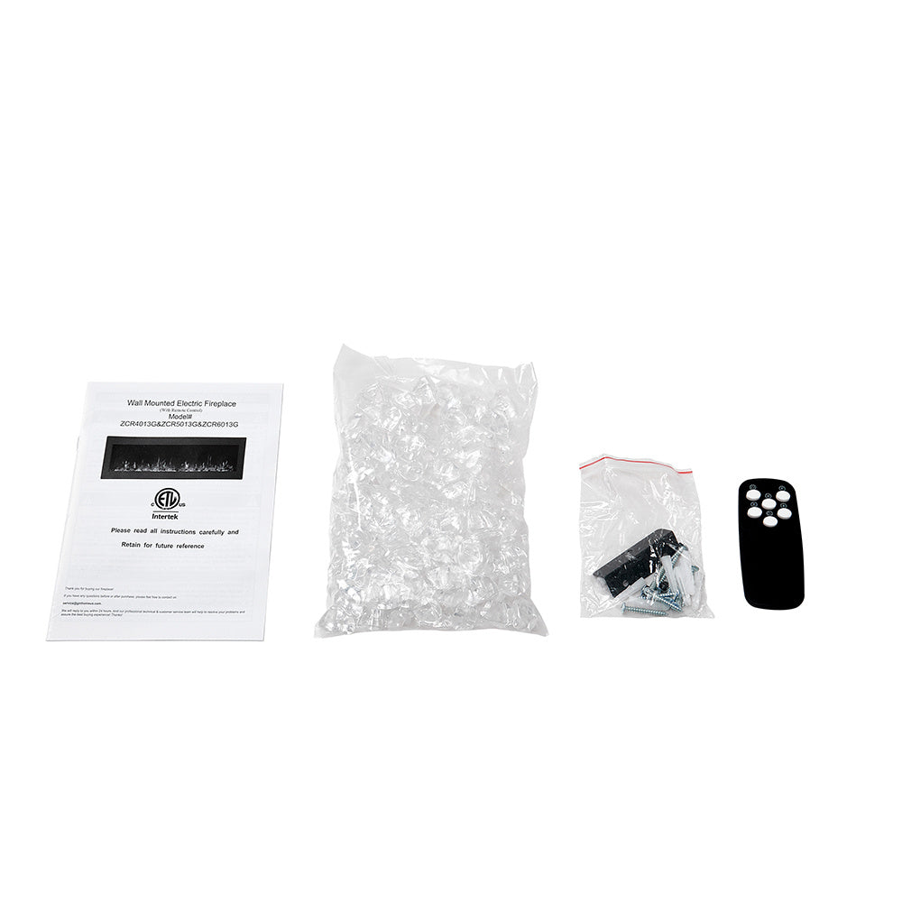 Each modern electric fireplace includes crystal stones and faux fireplace logs for a lifelike flame effect. This design mimics the look of a real fire, offering a maintenance-free experience while delivering warmth and charm. Safety features, such as cool-touch glass and automatic shutoff, make it a perfect choice for bedrooms, living rooms, or even home offices.