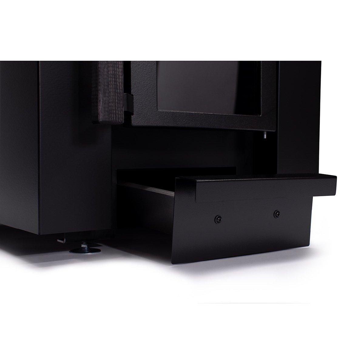 The cast-iron mouthpiece of the sauna stove makes it easy to follow the flame. Its mouthpiece is sturdy and does not bend when in use, and has a comfortable wooden handle. The large grate and fire air control through the back protection plate of the firebox ensures an efficient and clean combustion.