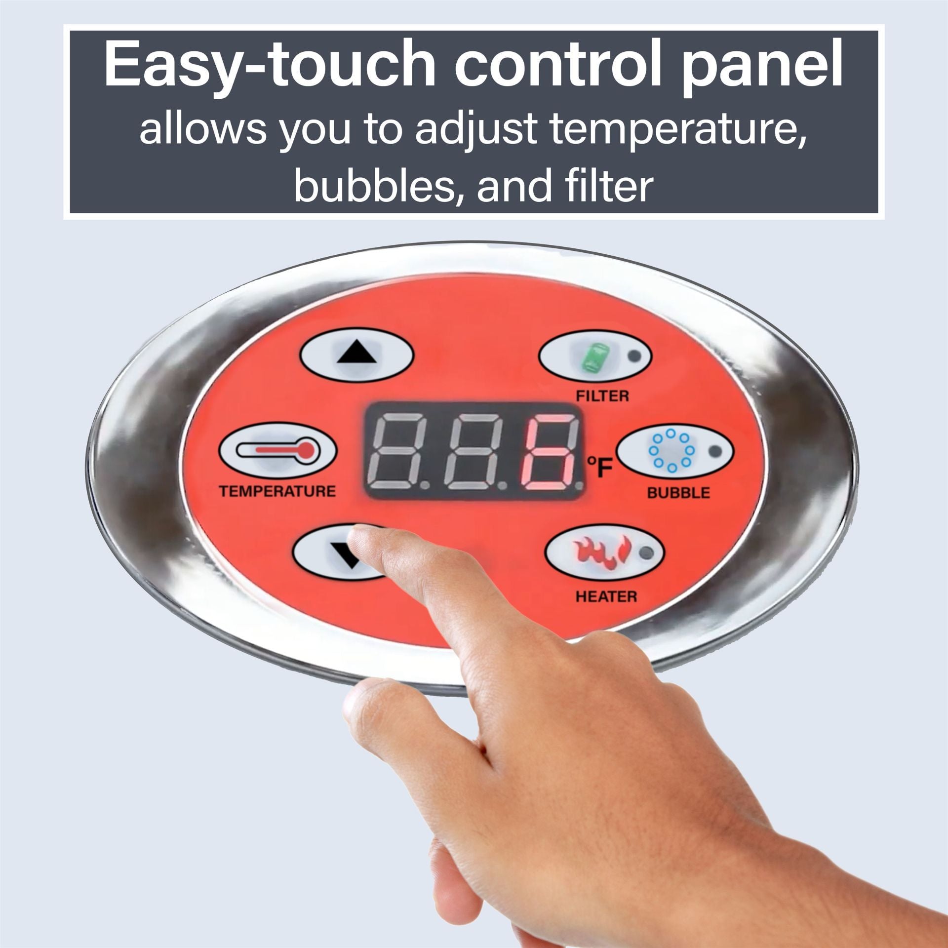 • Easy to operate digital panel with bubble jet function, temperature/heat controls and filtering